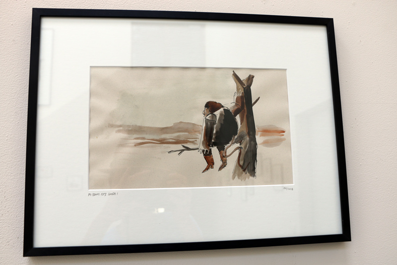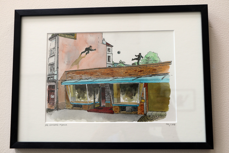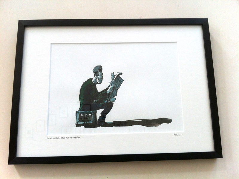 Wir zeigen hauptsächlich Arbeiten von ihm, die „frei und echt” entstanden sind. Also weder als Auftragsarbeit noch digital entwickelt worden sind. Darauf bezieht sich übrigens auch sein Titel, den er mit analogen Stegreif-Zeichnungen übersetzen würde.